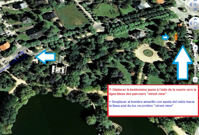 Vous venez d'activer STREET VIEW qui vous permet d'être au niveau du sol et de parcourir les routes traçées en bleu.